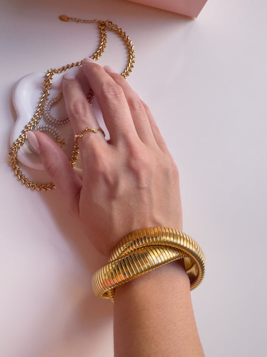 Bold Geometric Gold Cuff – 18K PVD-Plated Stainless Steel, Water-Resistant Bracelet
