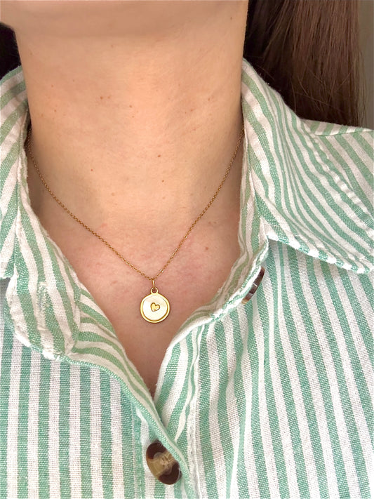 Gold Chain Necklace with Round Heart Pendant